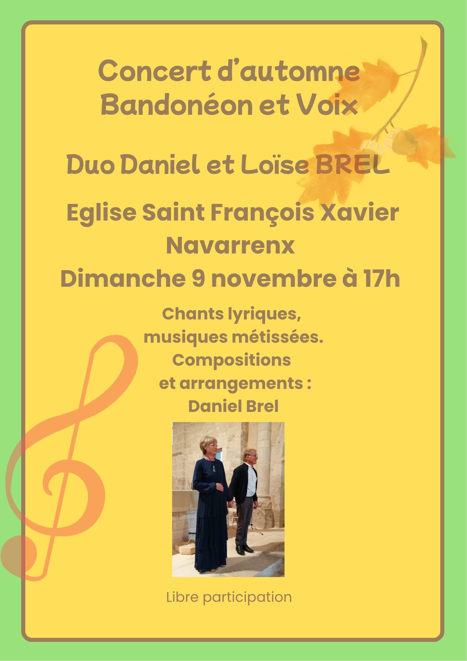 - 25 juillet 2025 - 16h00 - Eglise de Frayssinhes (Lot) - Duo Loïse et Daniel Brel : extrait - 9 novembre 2025 - 17h00 - Eglise Saint François Xavier - Navarrenx : Affiche
